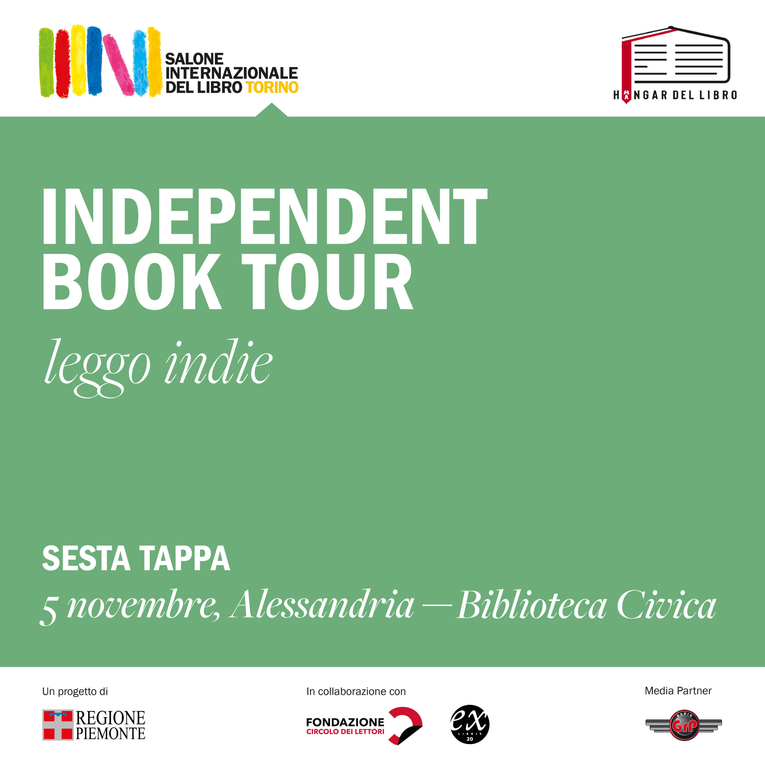 Dopo la buona accoglienza di pubblico ed editori nel 2021, ritorna per il secondo anno il viaggio nei capoluoghi di provincia del Piemonte per raccontare la ricchezza dell’editoria indipendente della Regione, eccellenza a livello nazionale. A ogni appuntamento si alterneranno quattro case editrici indipendenti, selezionate a giugno attraverso la call Hangar Book, che presenteranno il loro libro del momento – tra romanzi, saggi, raccolte di poesie, graphic novel, albi illustrati, libri per bambini –, accompagnate da sketch e azioni teatrali curate da B-Teatro. Novità di quest’anno il progetto #Booklovers della rivista digitale exlibris20, che coinvolgerà 28 lettrici e lettori, anch’essi selezionati a giugno grazie ad una call dedicata: per ogni tappa del tour quattro di loro affiancheranno una casa editrice ciascuno per raccontare il loro punto di vista sul libro, trasmettendo così al pubblico anche le emozioni e le riflessioni di chi ama immergersi nella lettura e pubblicheranno sui propri profili social recensioni e interviste. Nella sesta tappa verranno presentati: Miraggi Edizioni, Stracci e ossa di Giorgio Olmoti Atene del Canavese, La Repubblica delle Muse di Giulio Civitano LAReditore, Vino e amore caustico di Fabio Rotondo Echos edizioni, La vendetta di Stravinsky di Alberto Rossi
