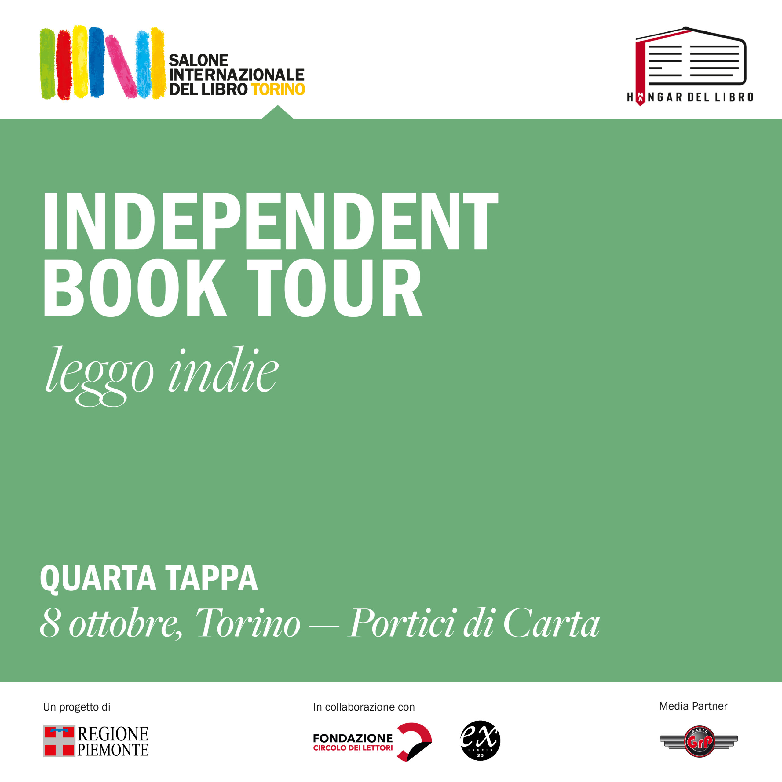 Dopo la buona accoglienza di pubblico ed editori nel 2021, ritorna per il secondo anno il viaggio nei capoluoghi di provincia del Piemonte per raccontare la ricchezza dell’editoria indipendente della Regione, eccellenza a livello nazionale. A ogni appuntamento si alterneranno quattro case editrici indipendenti, selezionate a giugno attraverso la call Hangar Book, che presenteranno il loro libro del momento – tra romanzi, saggi, raccolte di poesie, graphic novel, albi illustrati, libri per bambini –, accompagnate da sketch e azioni teatrali curate da B-Teatro. Novità di quest’anno il progetto #Booklovers della rivista digitale exlibris20, che coinvolgerà 28 lettrici e lettori, anch’essi selezionati a giugno grazie ad una call dedicata: per ogni tappa del tour quattro di loro affiancheranno una casa editrice ciascuno per raccontare il loro punto di vista sul libro, trasmettendo così al pubblico anche le emozioni e le riflessioni di chi ama immergersi nella lettura e pubblicheranno sui propri profili social recensioni e interviste. Nella quarta tappa verranno presentati: Editoria Damanhur, Personalità Interiori di Elefantina Genziana Editore XY.IT, Alba di Thomas Tsalapatis Codice Edizioni, Lo sanno tutti che tua madre è una strega di Rivka Galchen Yume, Unter den linden di Enrico Giacovelli Diabolo Edizioni, This Machine di Simone Saccucci e Federico Appel